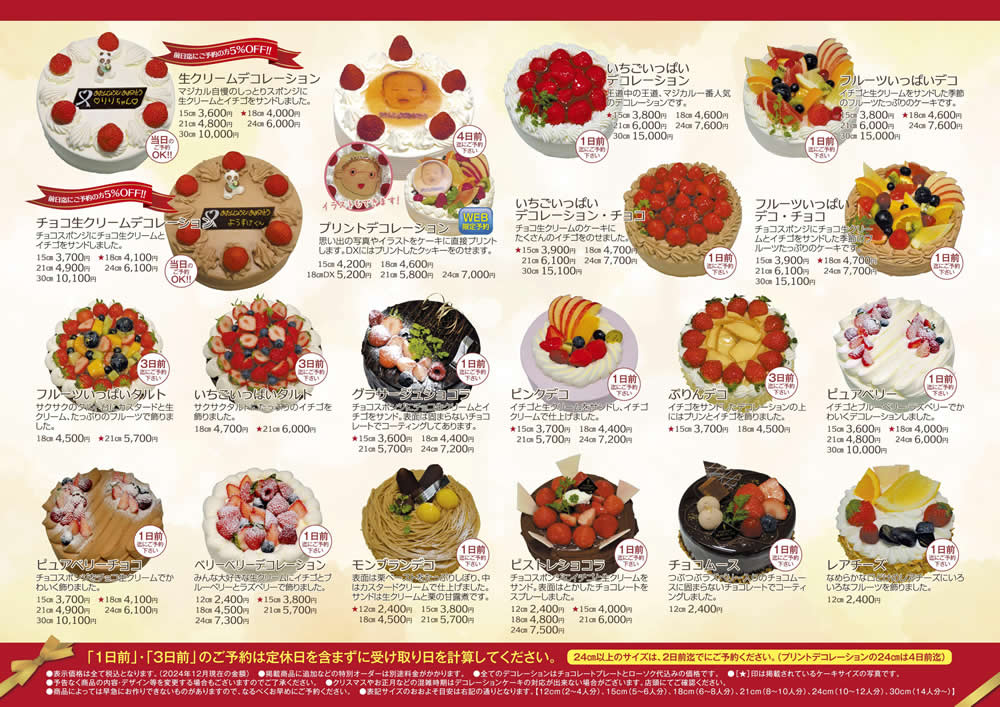 の期間は下記デコレーションケーキのみのご注文&引渡しが可能です。